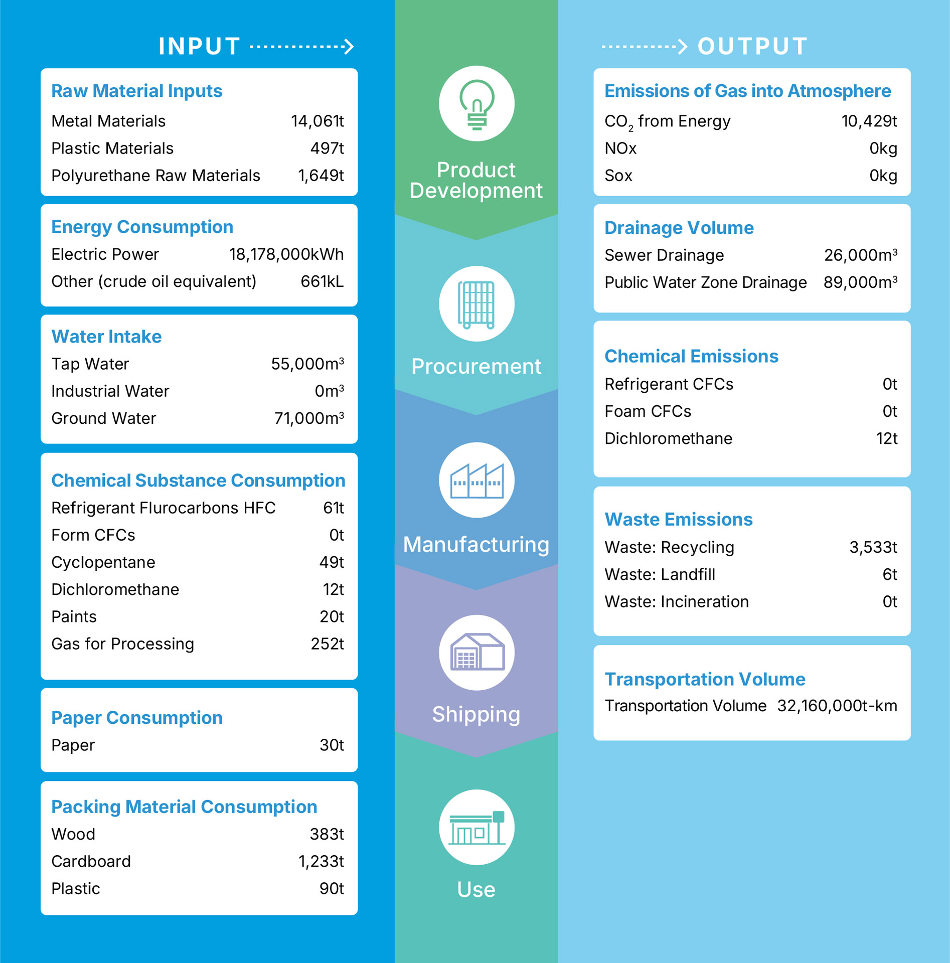 | Development and design of eco friendly products | Development of products using refrigerants with low global warming potential | ◎ | Development of products using refrigerants with low global warming potential | Completed the shift to natural refrigerants for all standard upright and undercounter refrigerators and freezers |