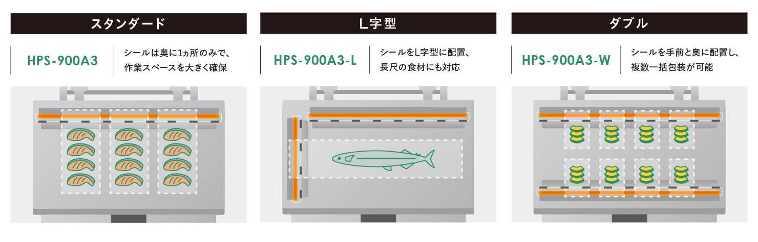| シール長さ | 930 mm | 奥 820mm、左 420mm | 奥 930mm、手前 930mm |