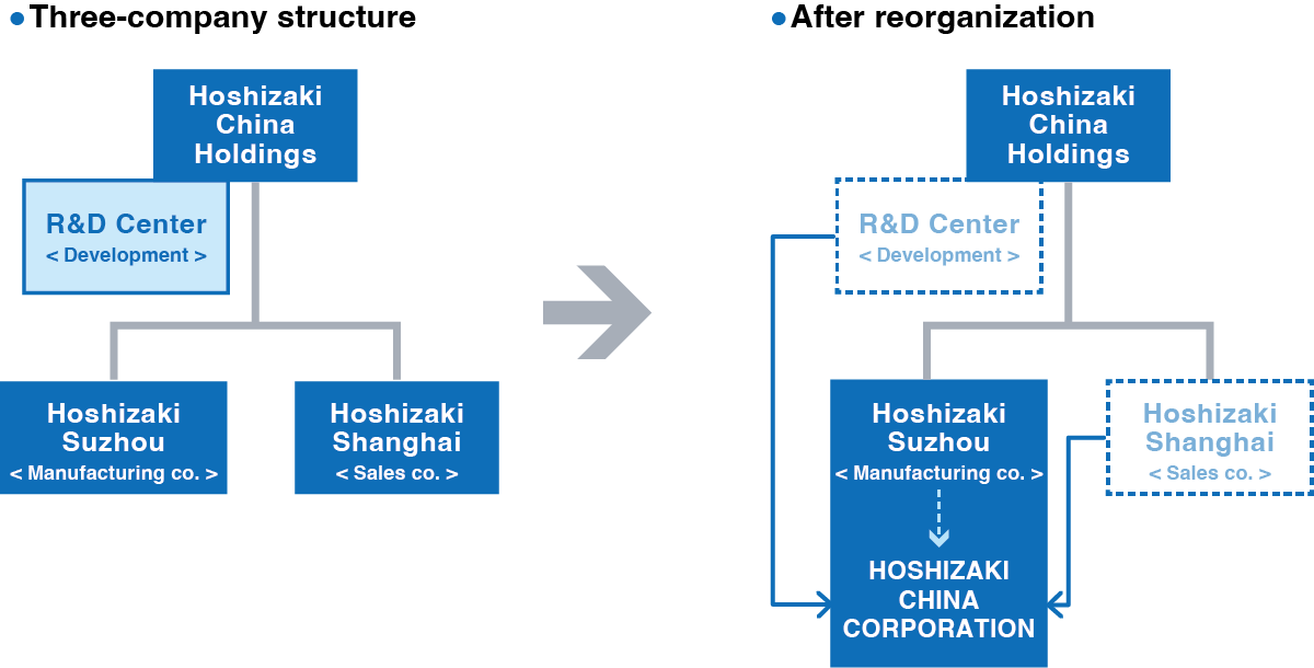 Hoshizaki therefore decided to pursue continued growth in China by restructuring its business to enable it to address such market changes.